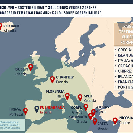 Se han realizado 12 cursos estructurados de formación diferentes de una duración promedio de 6 días (+2 días de viajes de ida y vuelta). En total, incluidos los días de viaje, SOSOLVER ha subvencionado la presencia de 37 docentes fuera de nuestras fronteras durante 297 días, en 12 ciudades de 9 países del espacio Schengen: